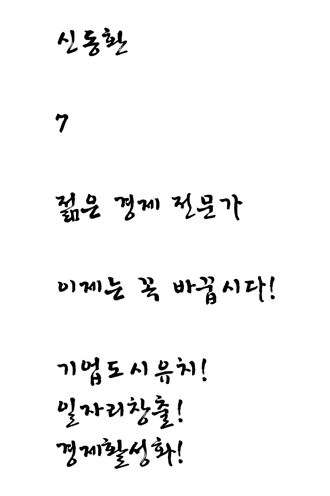 [급]아웃라인 부탁드립니다(_ _) kidcudi 일반 0 4511 2010.05.18 01:24 -0001.11.30 00:00 20100518-.ai (0byte) + 22 > > 신동환 > > 7 > > 젊은 경제 전문가 > > 이제는 꼭 바꿉시다! > > 기업도시유치! > 일자리창출! > 경제활성화! > > 너무많죠? > 위에 문구들을 유려체랑 쿨째즈체 두개로 아웃라인좀 부탁드립니당 > 조금 급해서요 ㅠ.ㅠ > 유려체밖에 없어서 유려체만 했어용